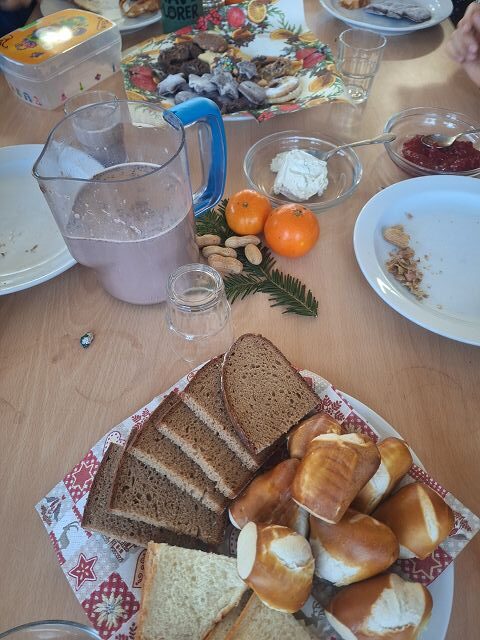 Am 23.12. fand unsere Weihnachtsfeier im Hort statt. Diesmal etwas anders gestaltet als in den letzten Jahren… Am Vormittag wurde in der Gruppe gesungen, Geschenke ausgepackt und sogar ein weihnachtlicher Kurzfilm geschaut. Das Highlight war sicherlich die festlich gedeckte Tafel mit allerlei Gebäck, Hefezopf, Laugenstangen, Rohkost und weiteres an Leckereien. Zum Schluss trafen sich alle Hortkinder auf der großen Schulwiese und sangen Weihnachtslieder und verabschiedeten sich so in die wohl verdienten Weihnachtsferien. Merry Chrismas